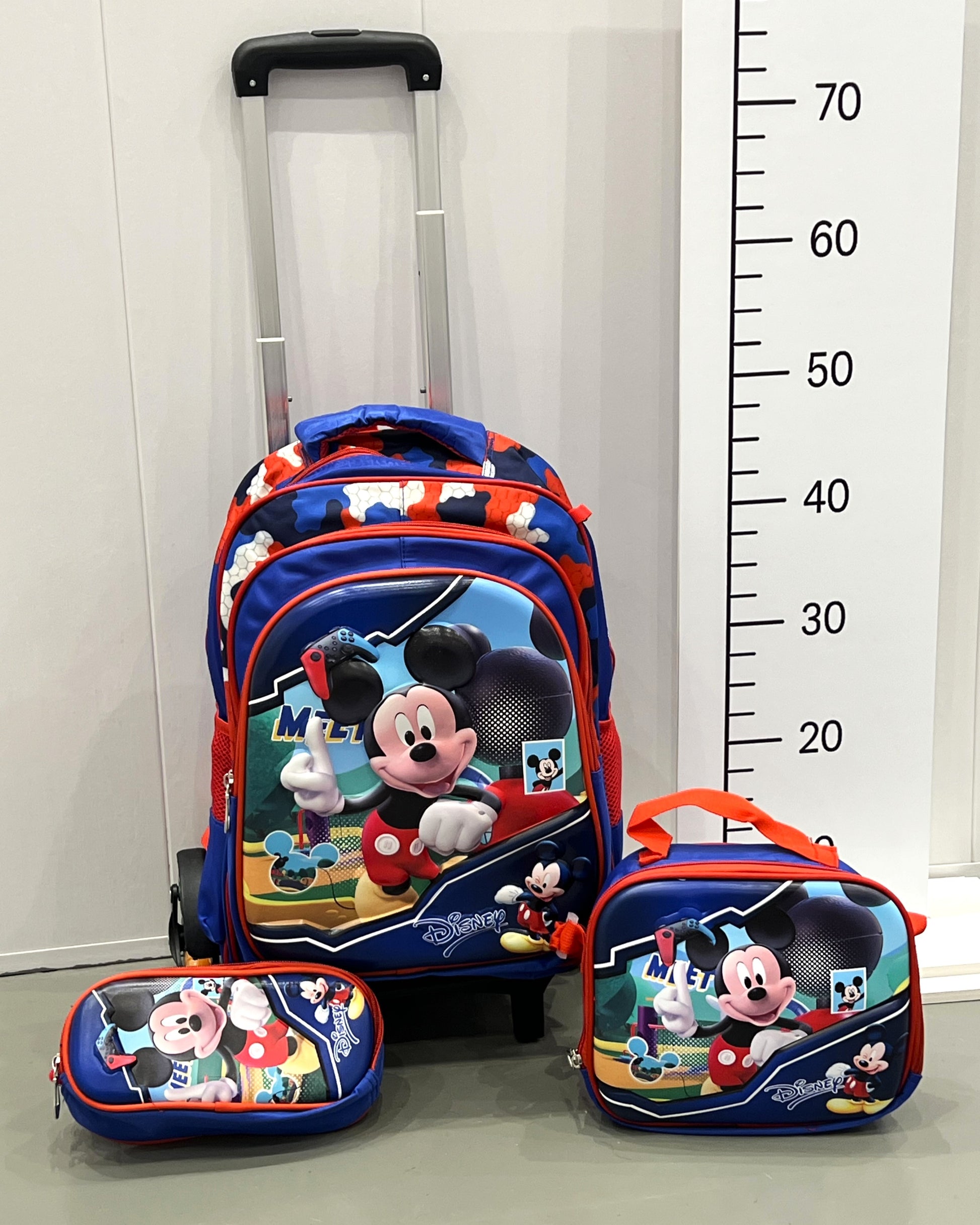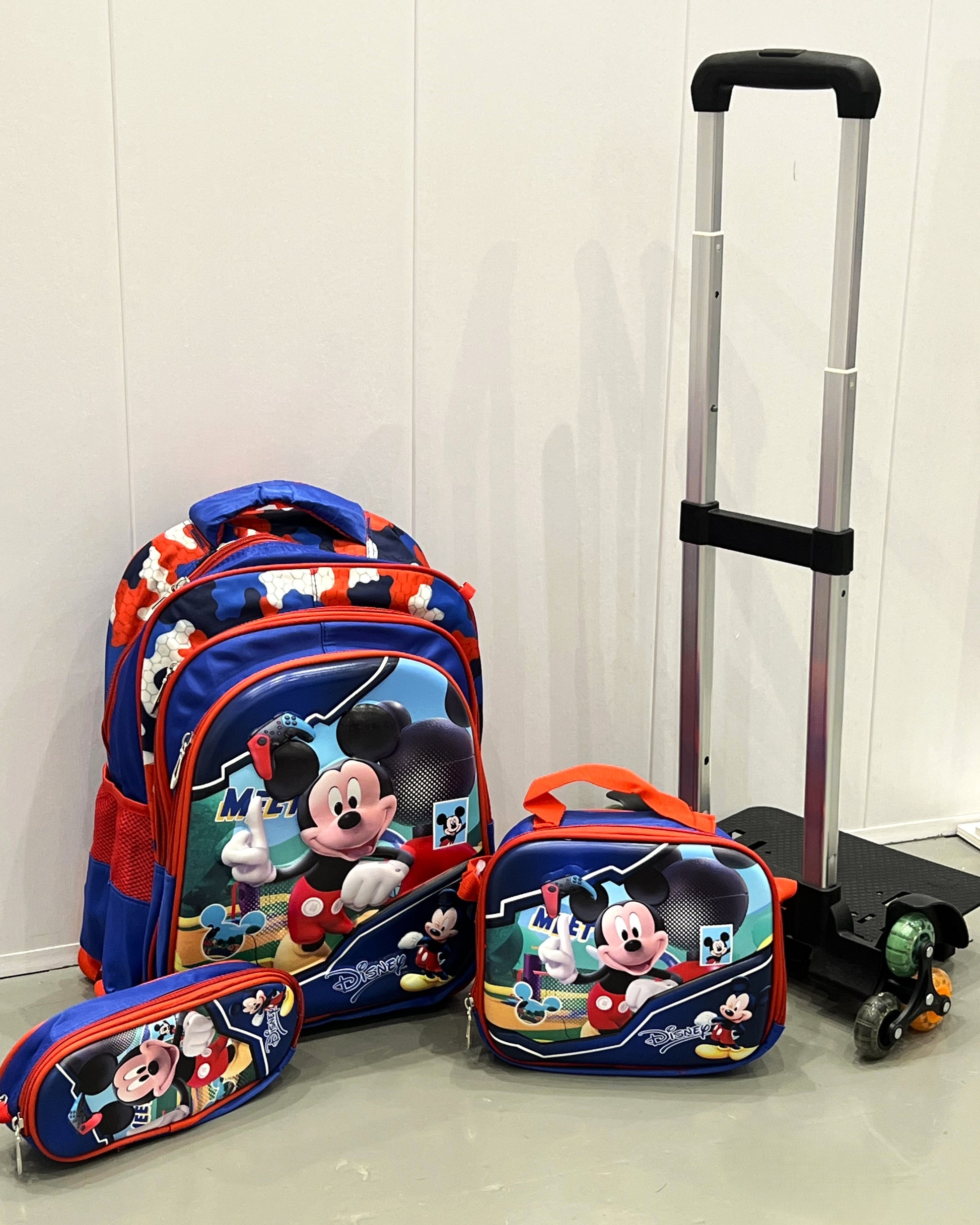 3-in-1 Detachable Trolley Schoolbag Set for Kids – Rolling Backpack with Lunch Bag & Pencil Case - 25-16106-10 Mickey