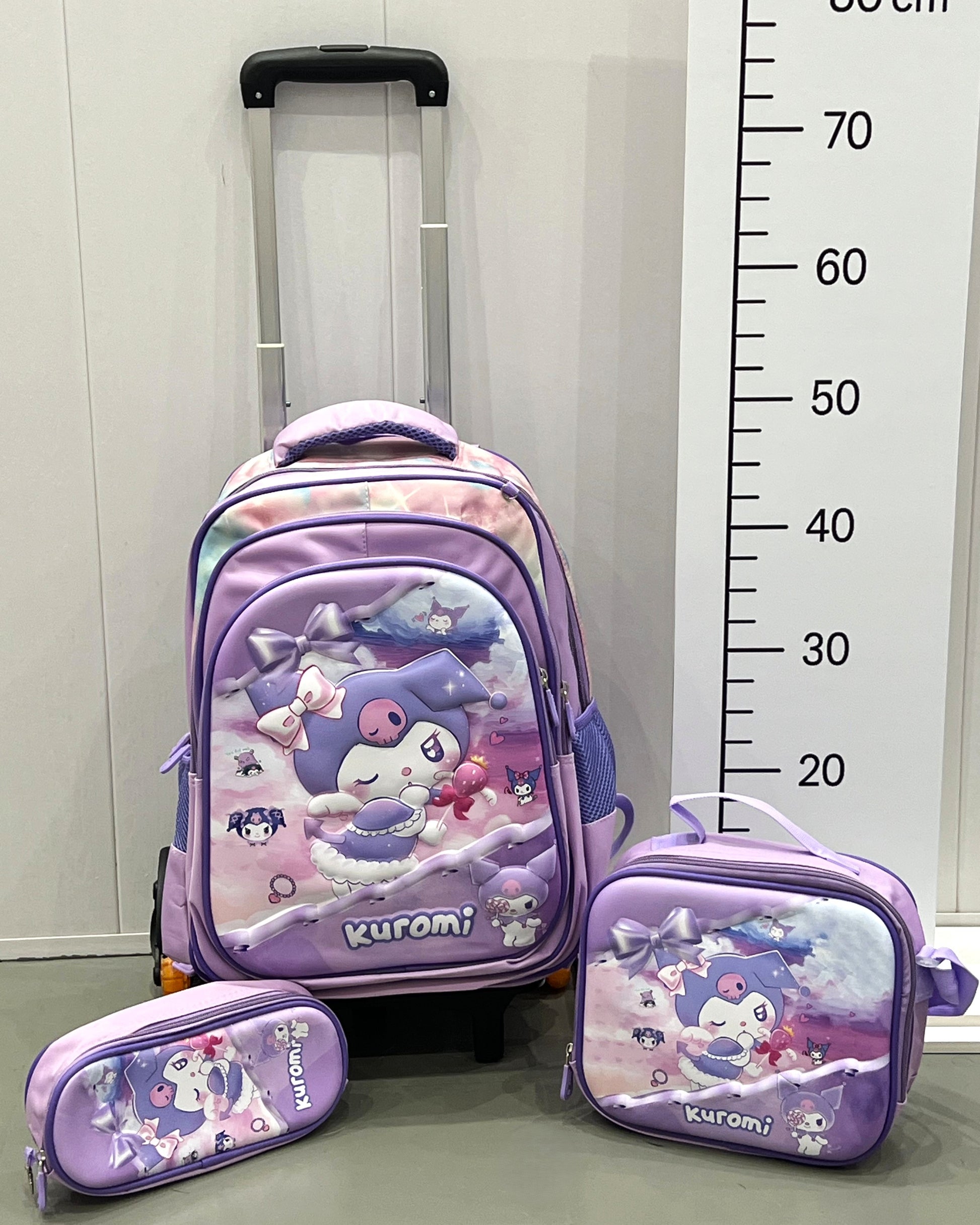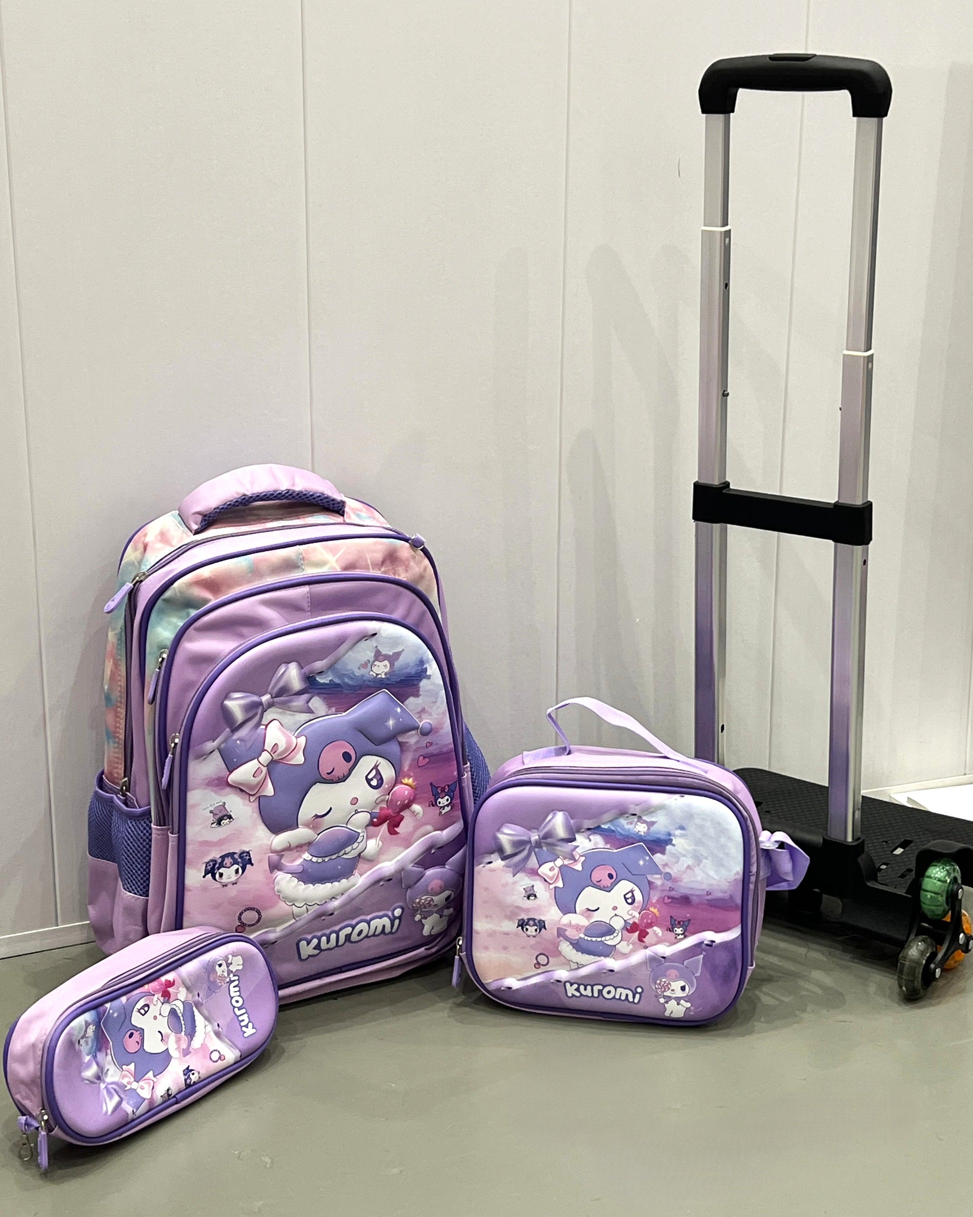 3-in-1 Detachable Trolley Schoolbag Set for Kids – Rolling Backpack with Lunch Bag & Pencil Case - 25-16106-7 Anime