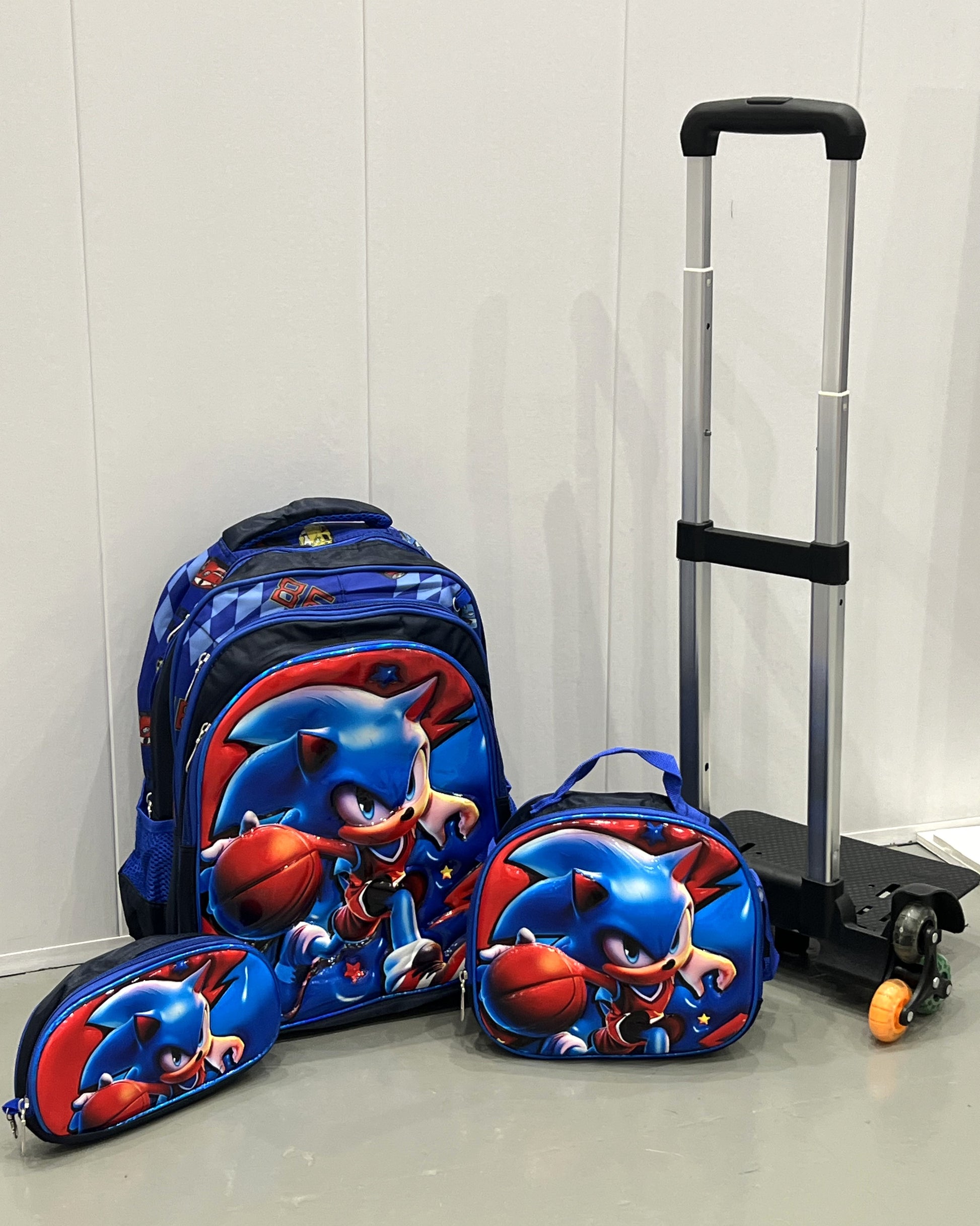 3-in-1 Detachable Trolley Schoolbag Set for Kids – Rolling Backpack with Lunch Bag & Pencil Case - 25-16210-11 Super