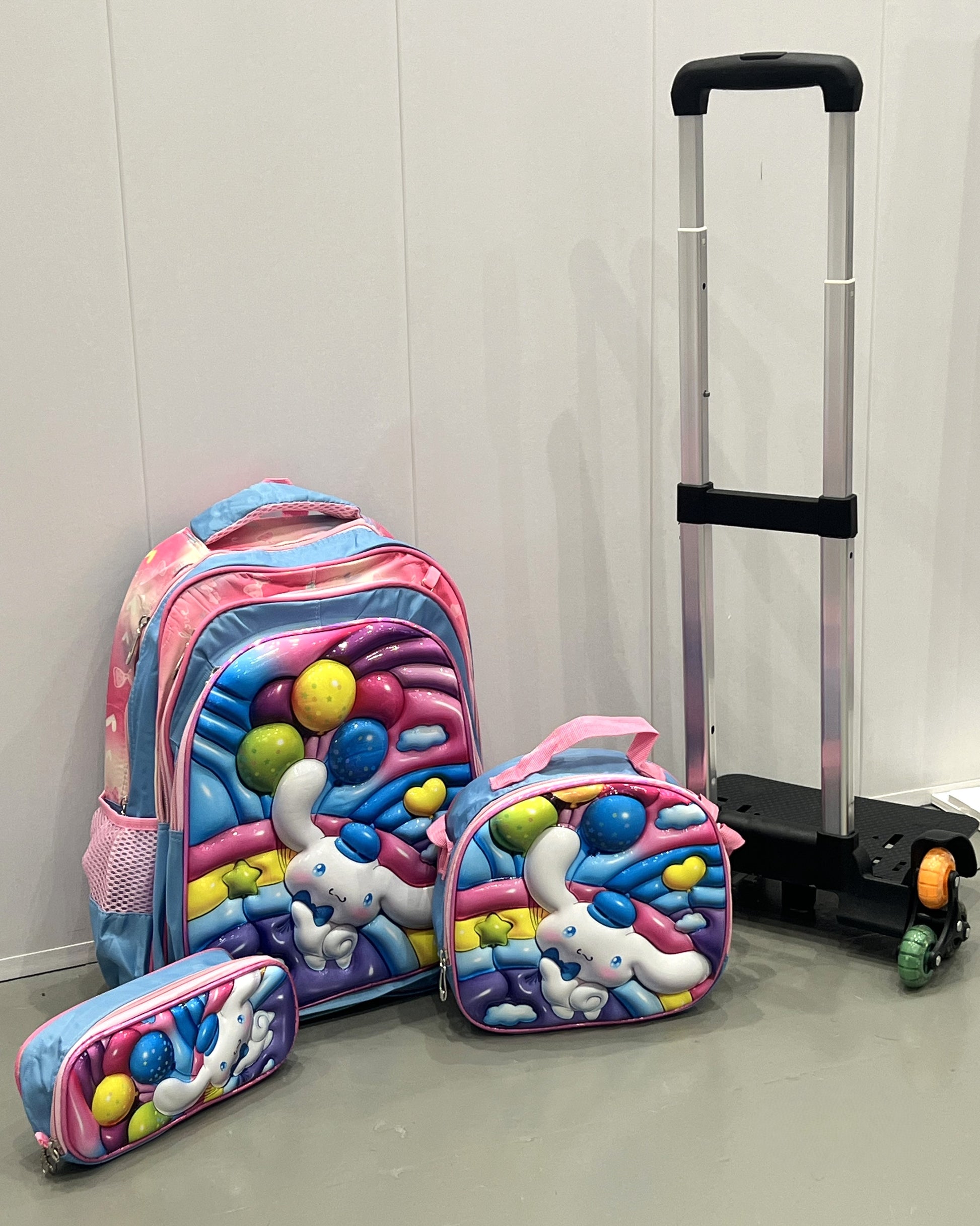 Make back-to-school easy and fun with our 3-in-1 Trolley Schoolbag Set for kids! This all-in-one set includes a rolling backpack, a matching lunch bag, and a zippered pencil case, making it the perfect companion for busy school days, field trips, or travel.