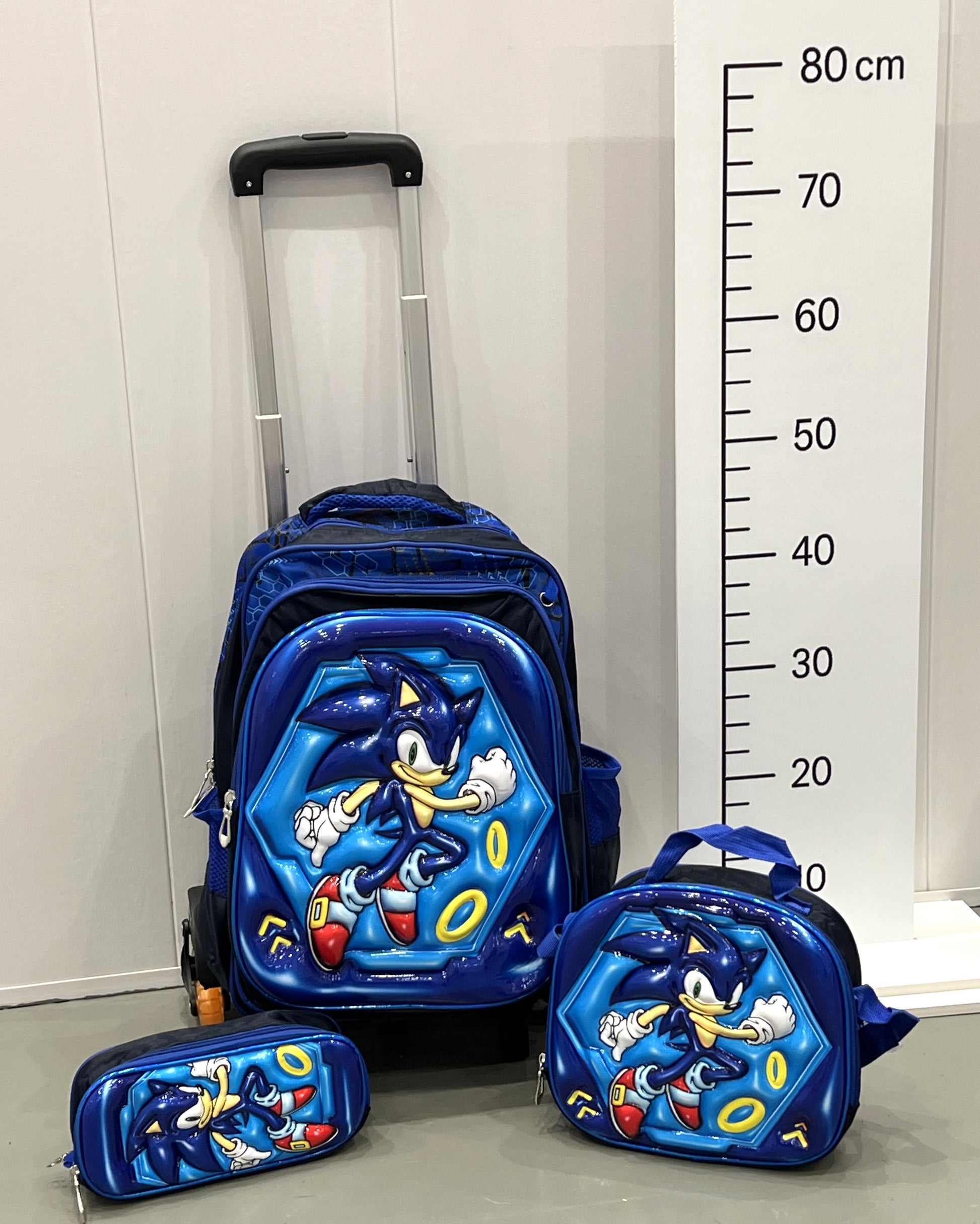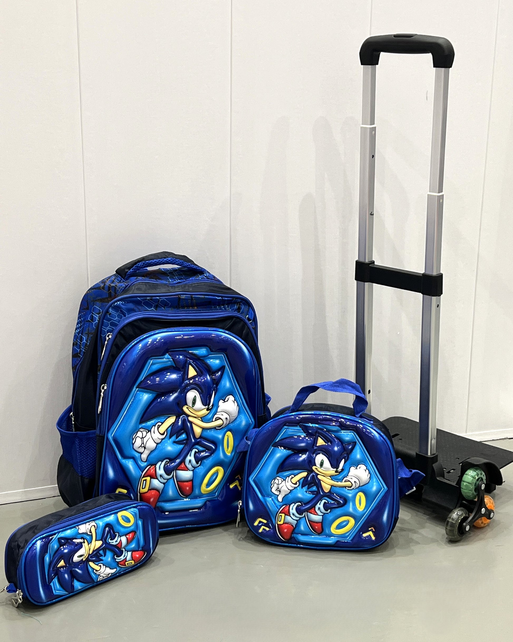 3-in-1 Detachable Trolley Schoolbag Set for Kids – Rolling Backpack with Lunch Bag & Pencil Case - 25-16210-5 Super