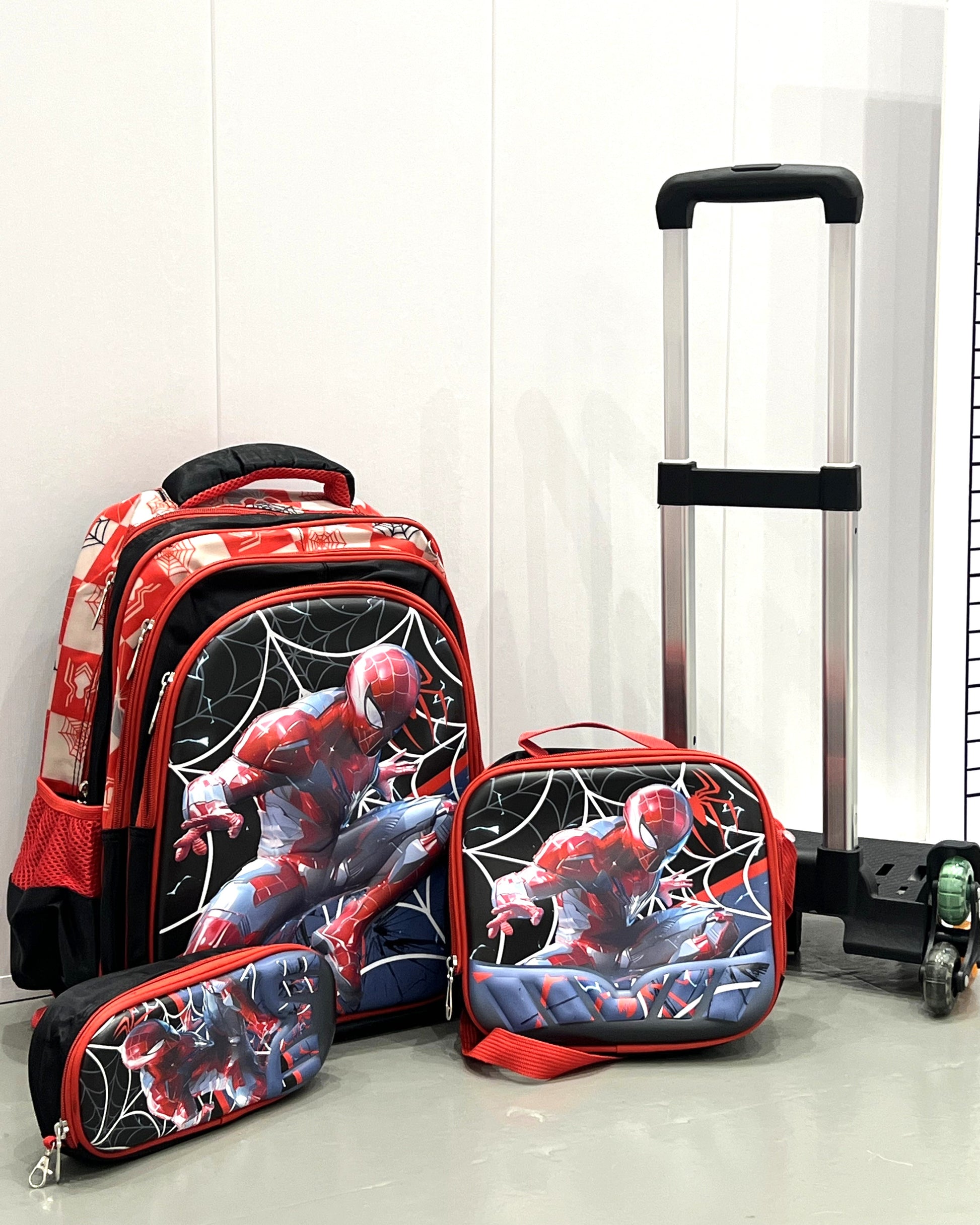 3-in-1 Detachable Trolley Schoolbag Set for Kids – Rolling Backpack with Lunch Bag & Pencil Case - 25-16211-1 Spider