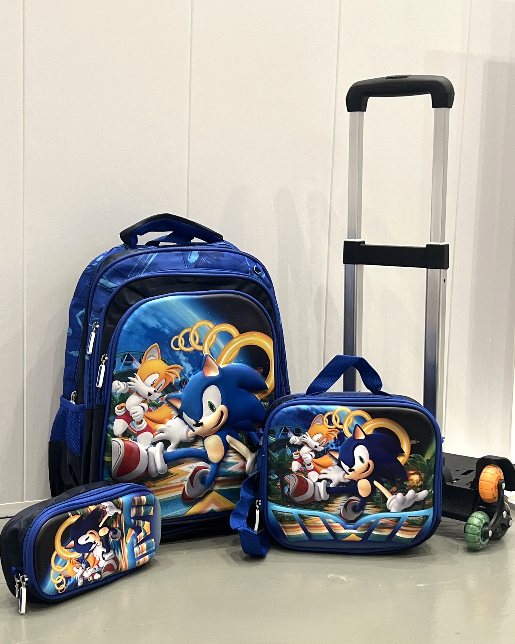 3-in-1 Detachable Trolley Schoolbag Set for Kids – Rolling Backpack with Lunch Bag & Pencil Case - 25-16211-3 Super