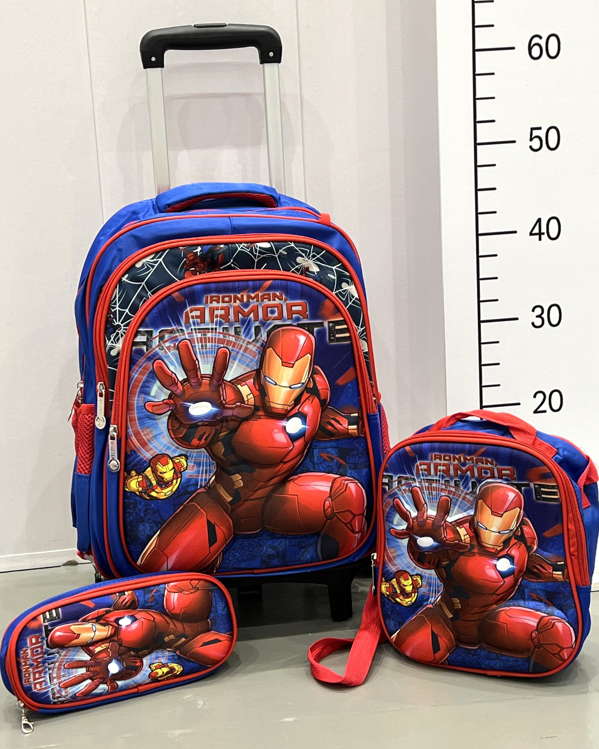 3-in-1 Detachable Trolley Schoolbag Set for Kids – Rolling Backpack with Lunch Bag & Pencil Case - 25-16211-4 Iron