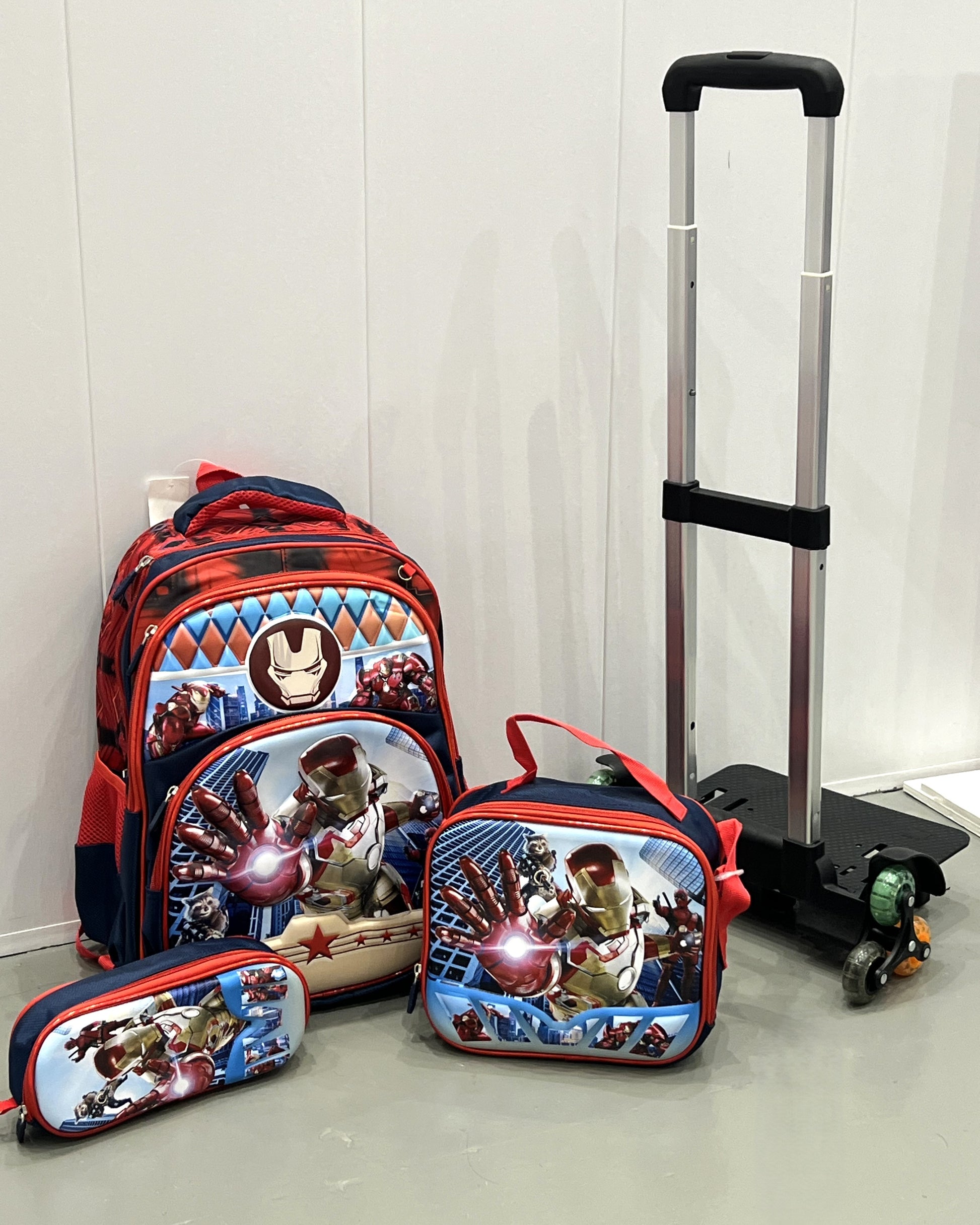 3-in-1 Detachable Trolley Schoolbag Set for Kids – Rolling Backpack with Lunch Bag & Pencil Case - 25-16222-8 Iron