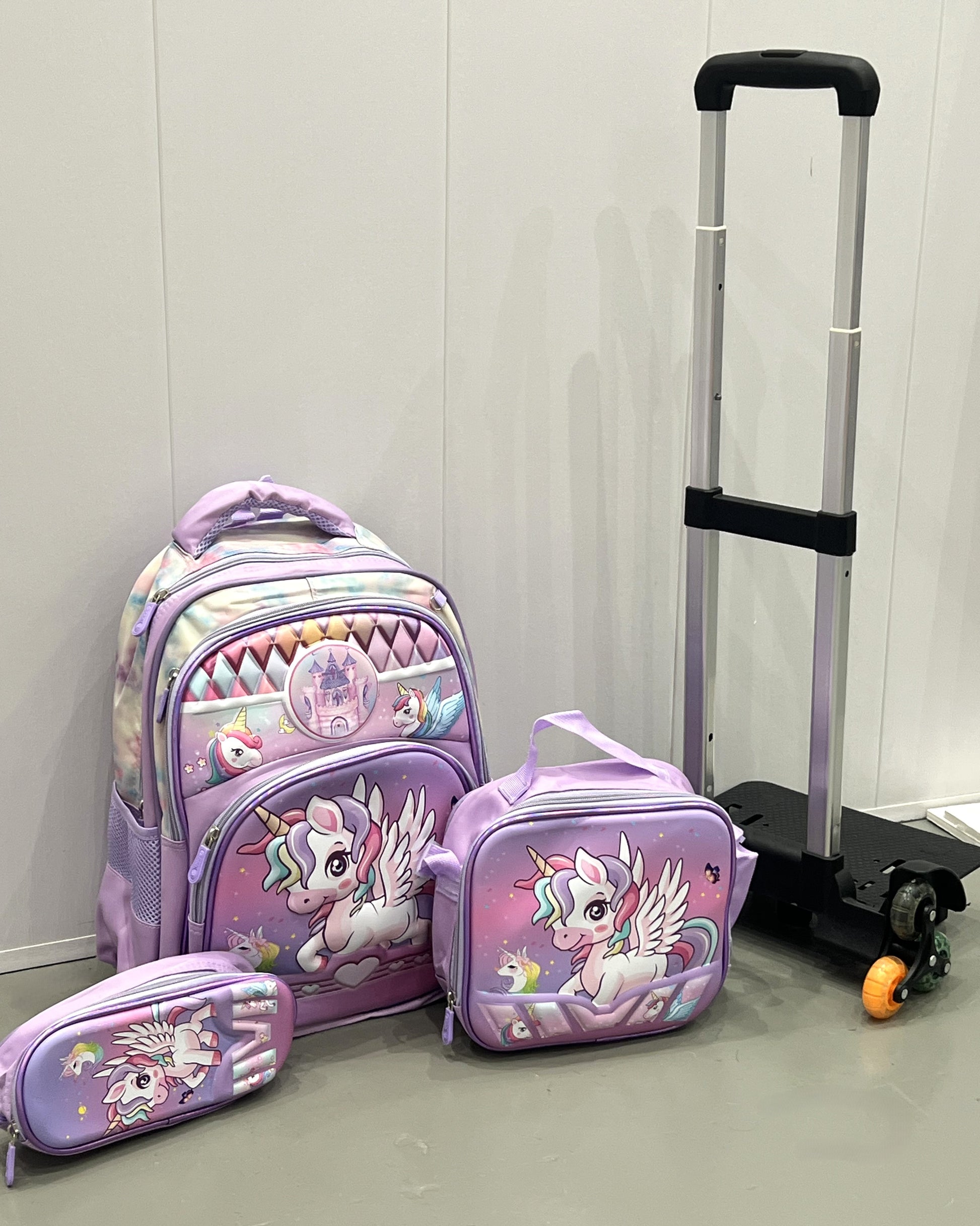 3-in-1 Detachable Trolley Schoolbag Set for Kids – Rolling Backpack with Lunch Bag & Pencil Case - 25-16222-9 Unicorn