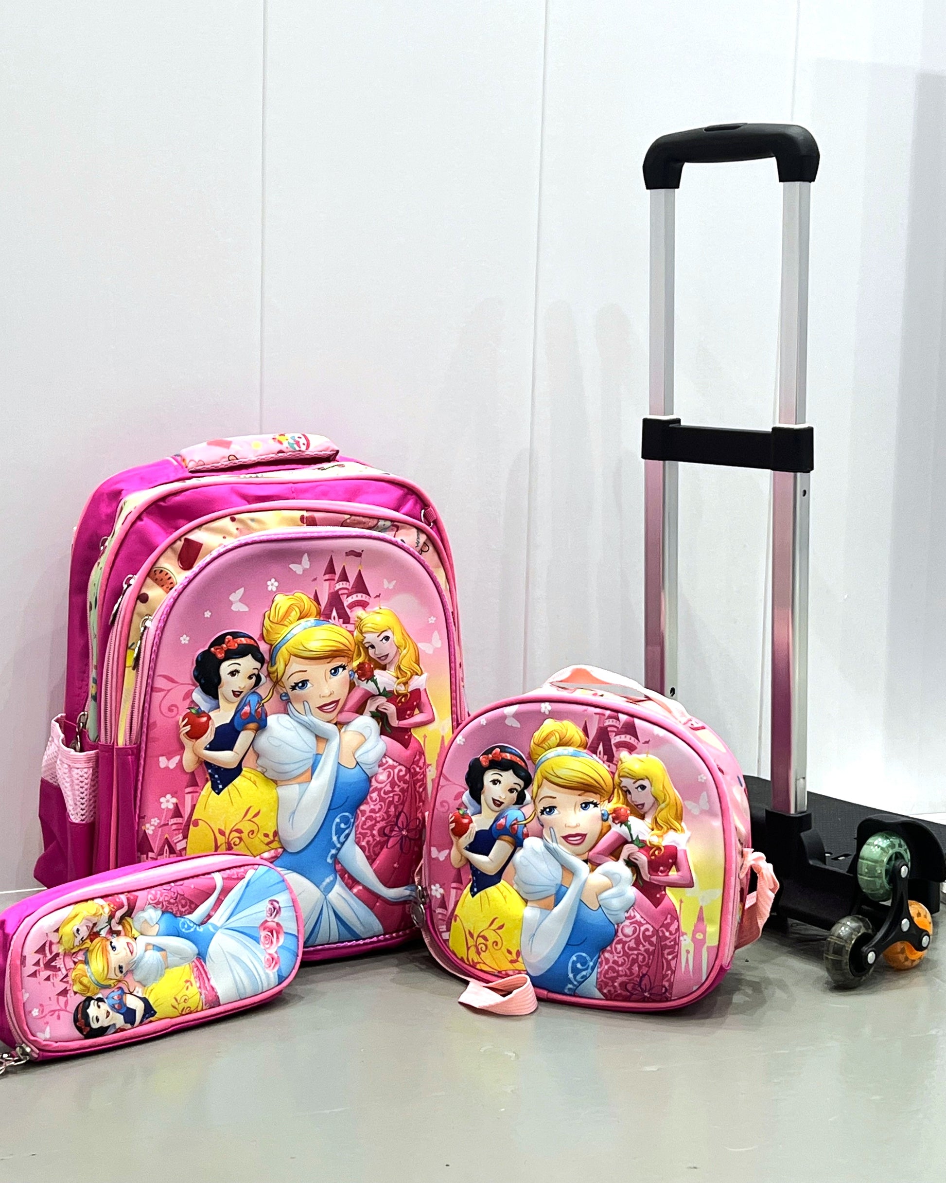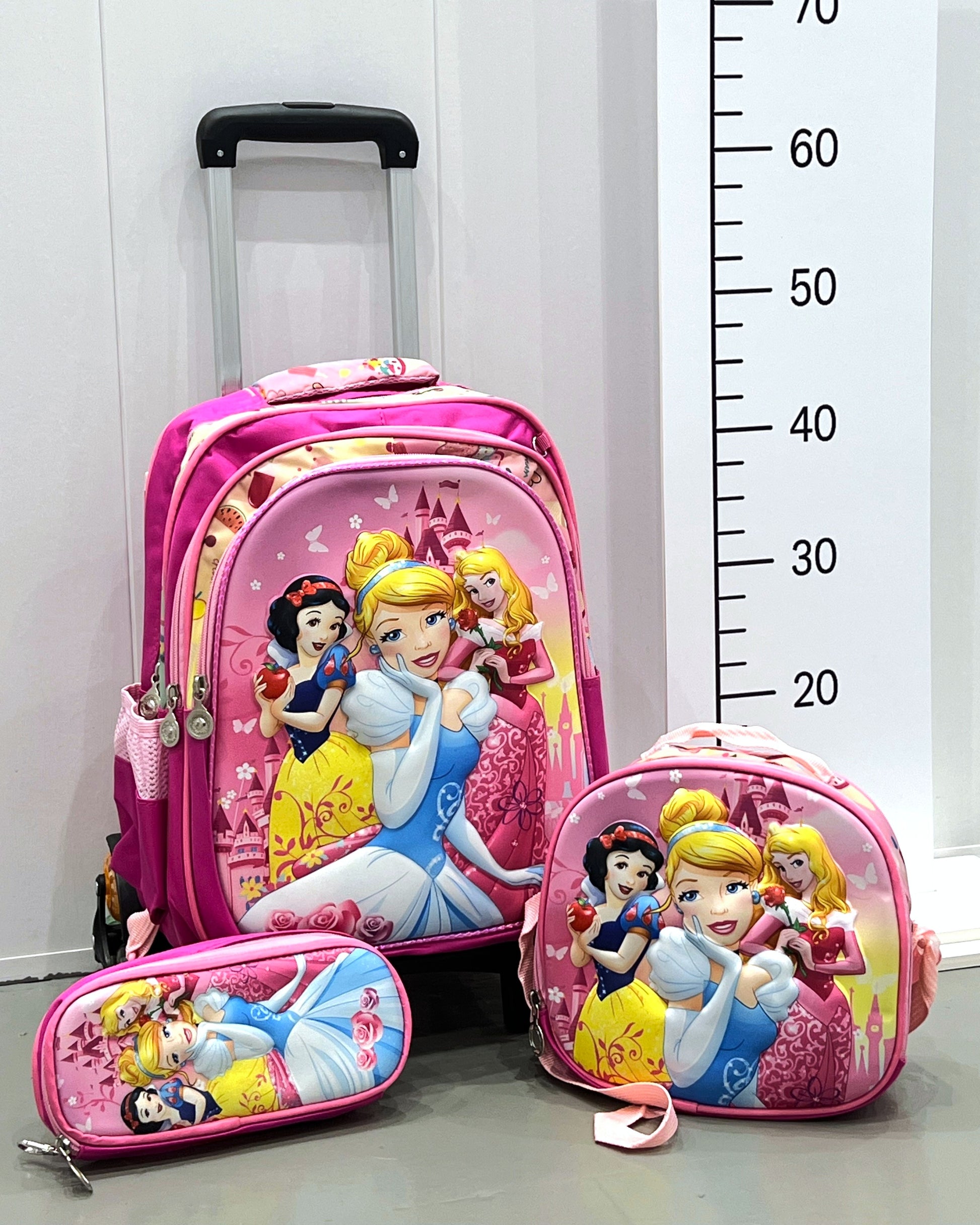 3-in-1 Detachable Trolley Schoolbag Set for Kids – Rolling Backpack with Lunch Bag & Pencil Case - 25-3001-5 Princesses