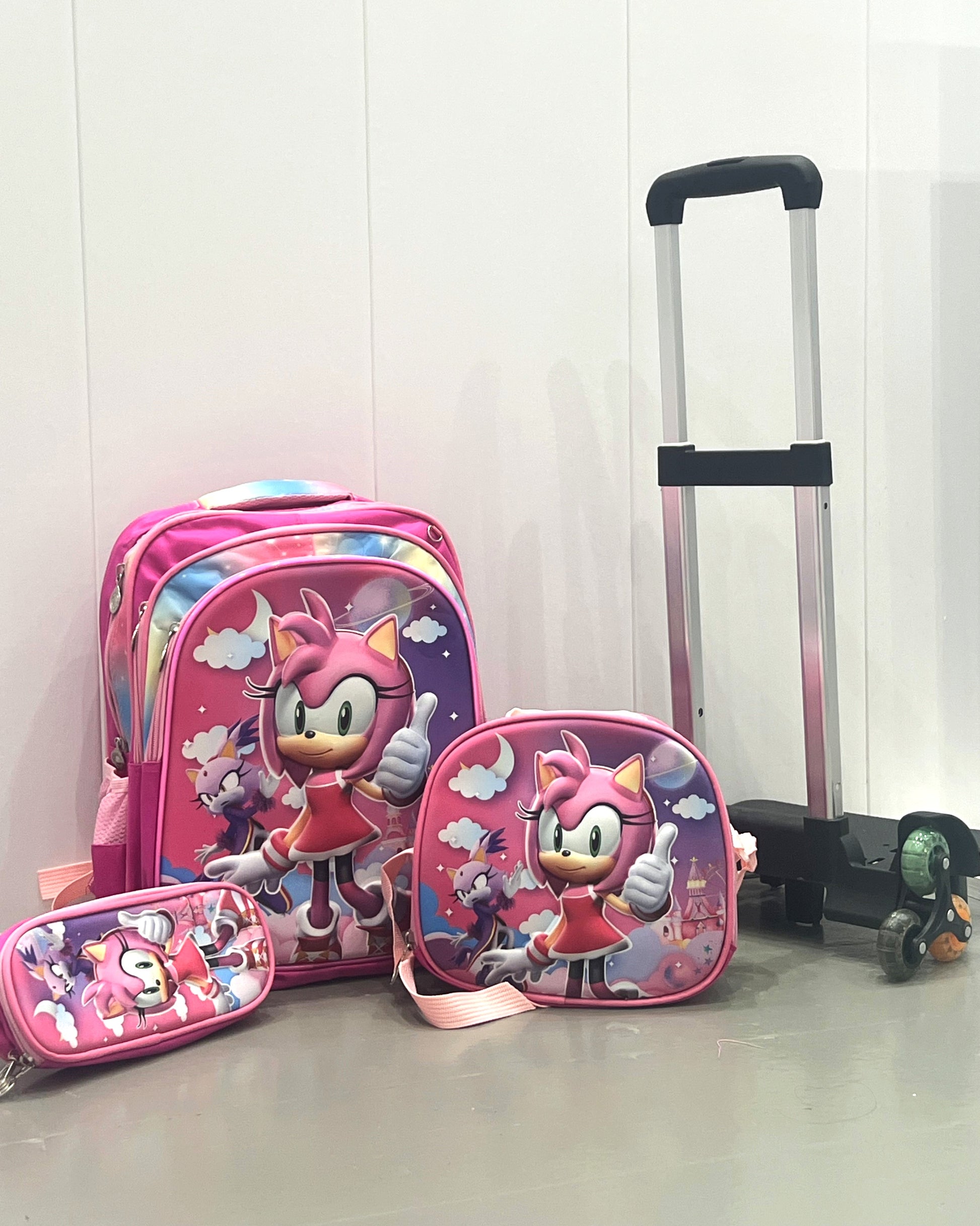 3-in-1 Detachable Trolley Schoolbag Set for Kids – Rolling Backpack with Lunch Bag & Pencil Case - 25-3001-9 Amy