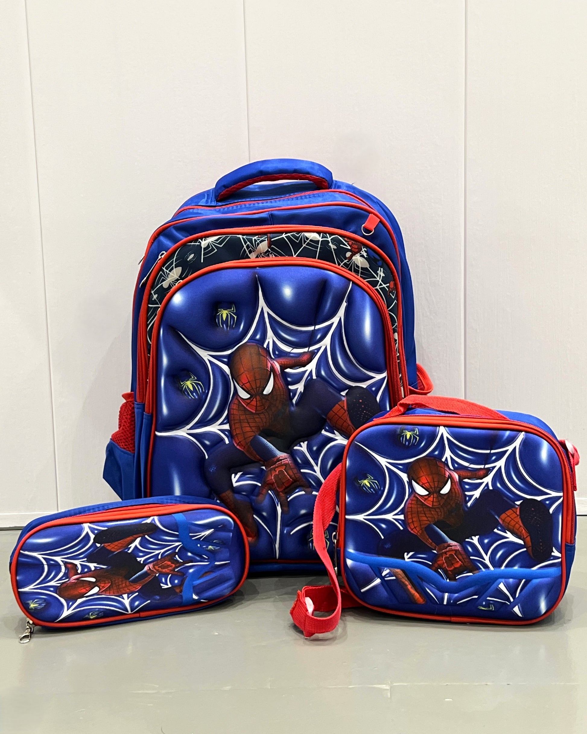 3-in-1 Detachable Trolley Schoolbag Set for Kids – Rolling Backpack with Lunch Bag & Pencil Case - 25-6215-11 Spider