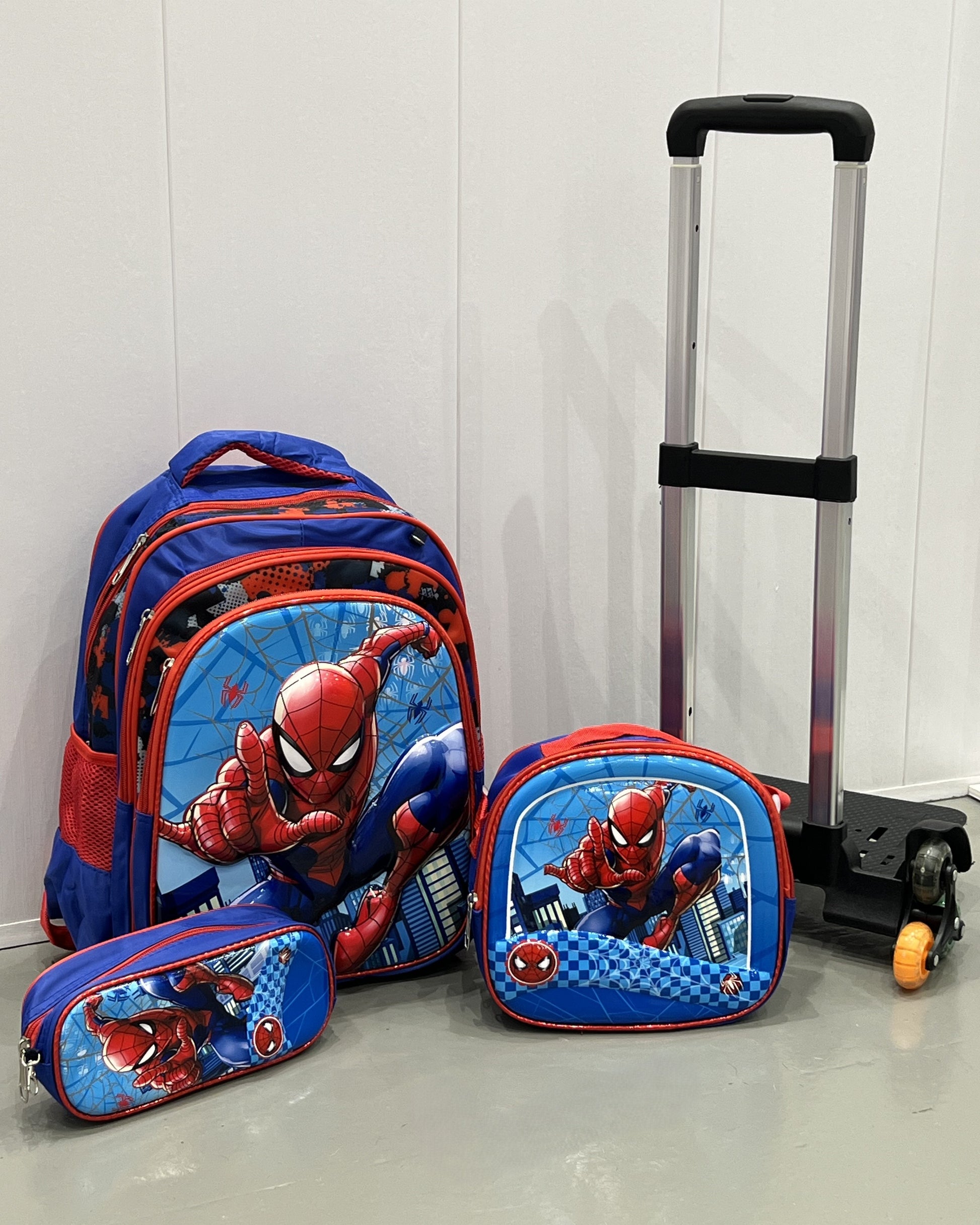 3-in-1 Detachable Trolley Schoolbag Set for Kids – Rolling Backpack with Lunch Bag & Pencil Case - 25-6215-14 Spider
