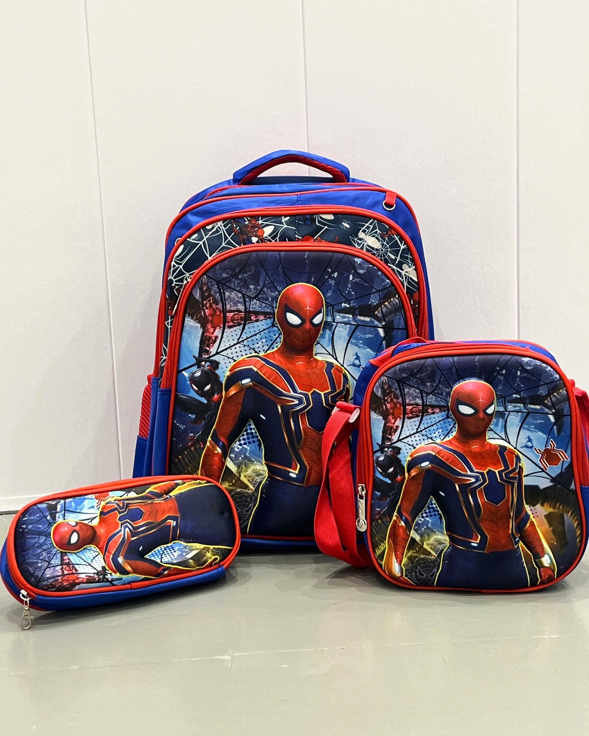 3-in-1 Detachable Trolley Schoolbag Set for Kids – Rolling Backpack with Lunch Bag & Pencil Case - 25-6215-15 Spider