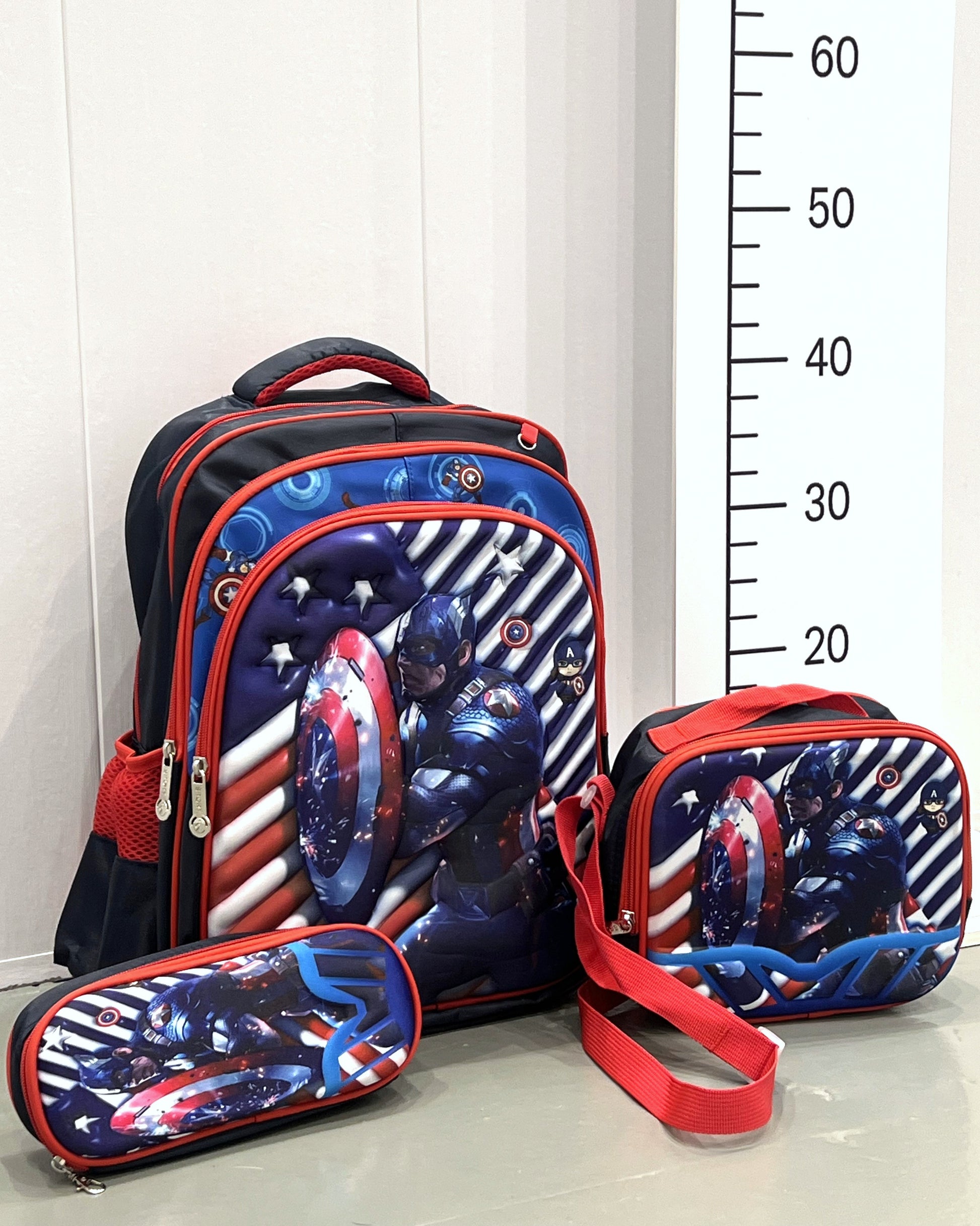 3-in-1 Detachable Trolley Schoolbag Set for Kids – Rolling Backpack with Lunch Bag & Pencil Case - 25-6215-17 Captain Striped