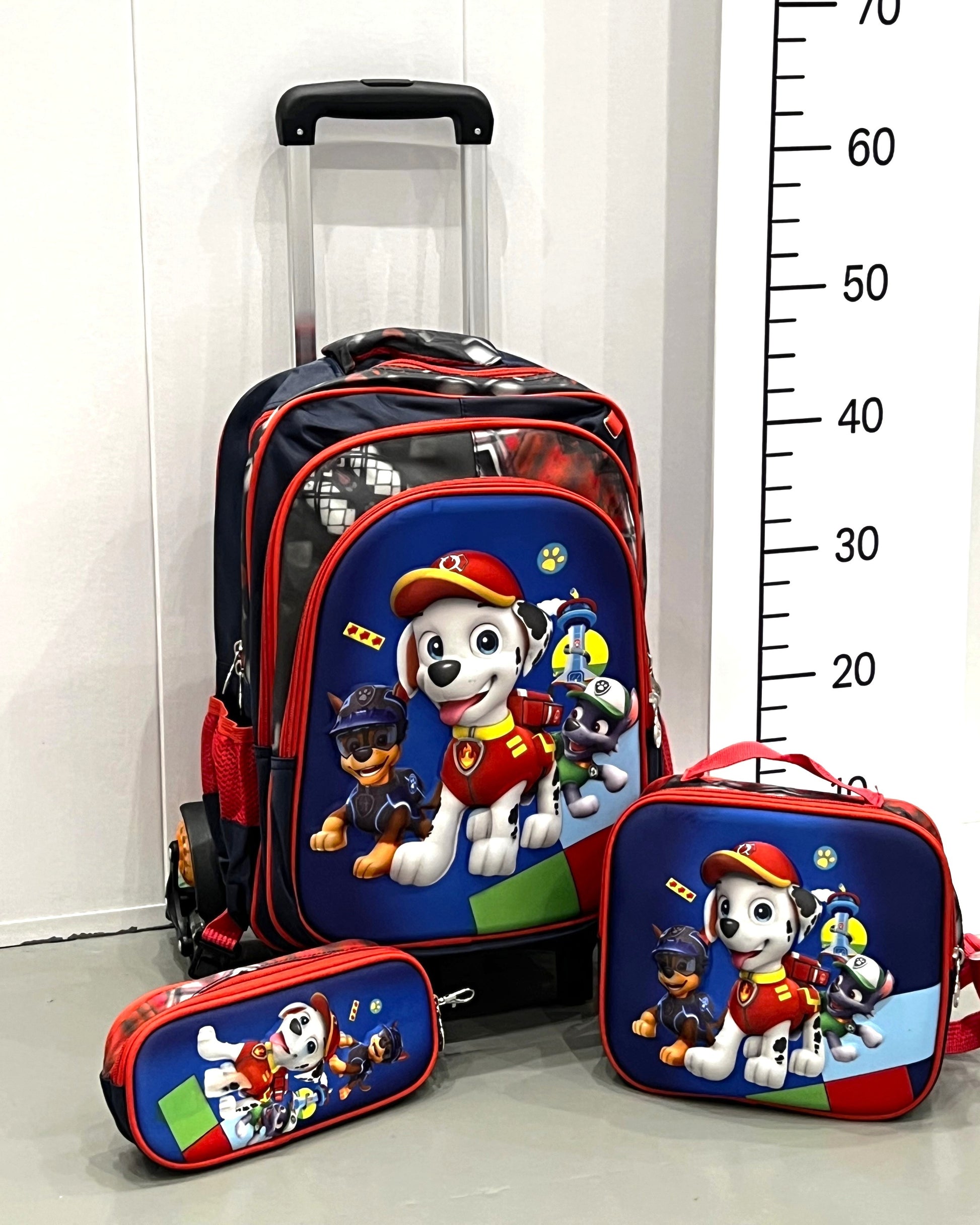 3-in-1 Detachable Trolley Schoolbag Set for Kids – Rolling Backpack with Lunch Bag & Pencil Case - 25-JZ2003-11 Patrol