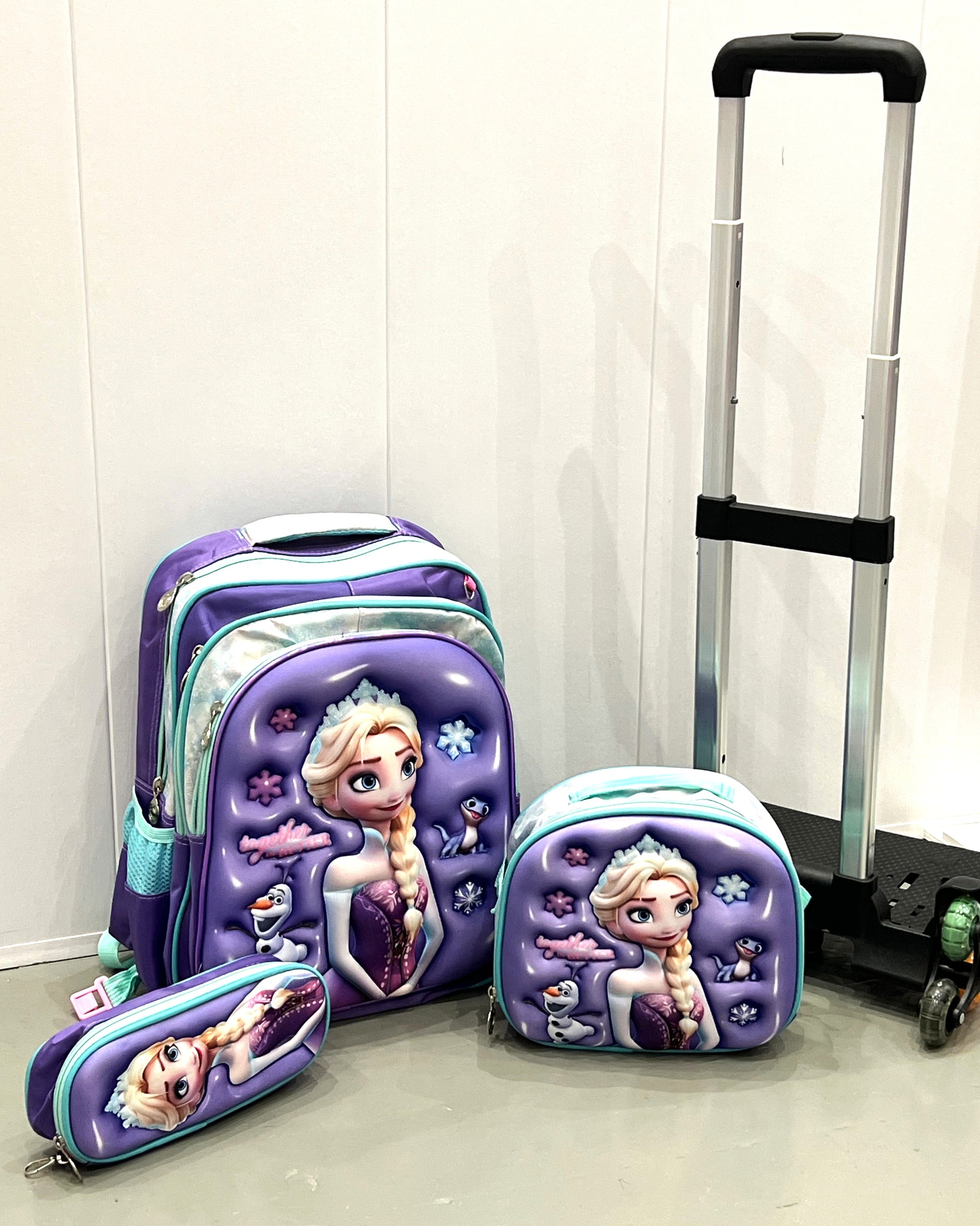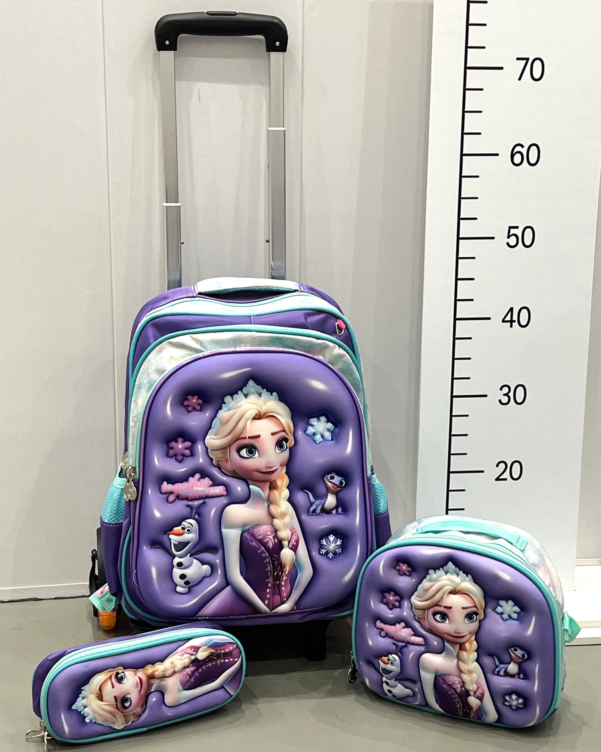 3-in-1 Detachable Trolley Schoolbag Set for Kids – Rolling Backpack with Lunch Bag & Pencil Case - 25-JZ2003-22 Ice Princess