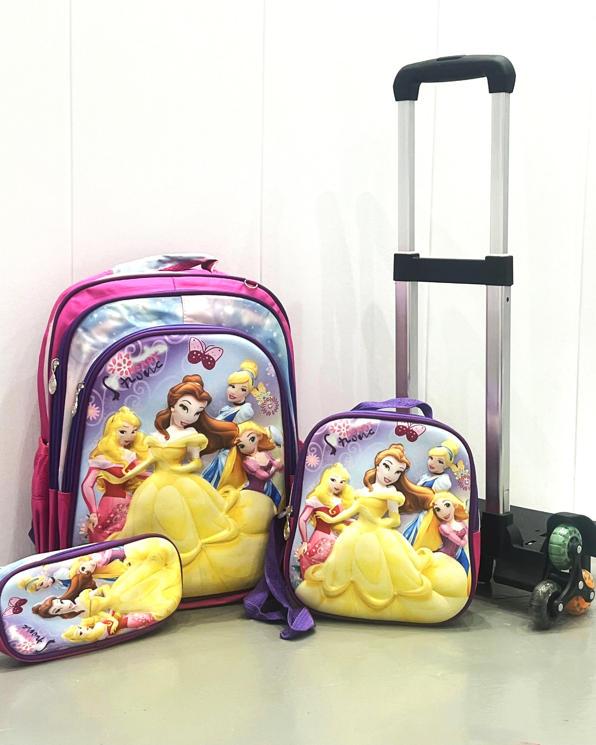 3-in-1 Detachable Trolley Schoolbag Set for Kids – Rolling Backpack with Lunch Bag & Pencil Case - 25-JZ2003-23 Princesses