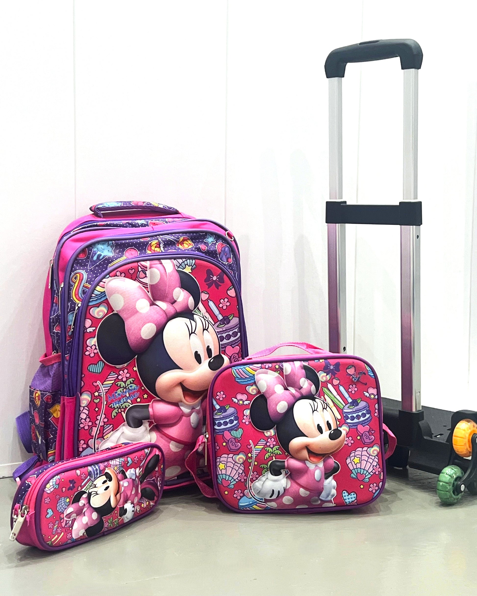 3-in-1 Detachable Trolley Schoolbag Set for Kids – Rolling Backpack with Lunch Bag & Pencil Case - 25-JZ2003-29 Minnie