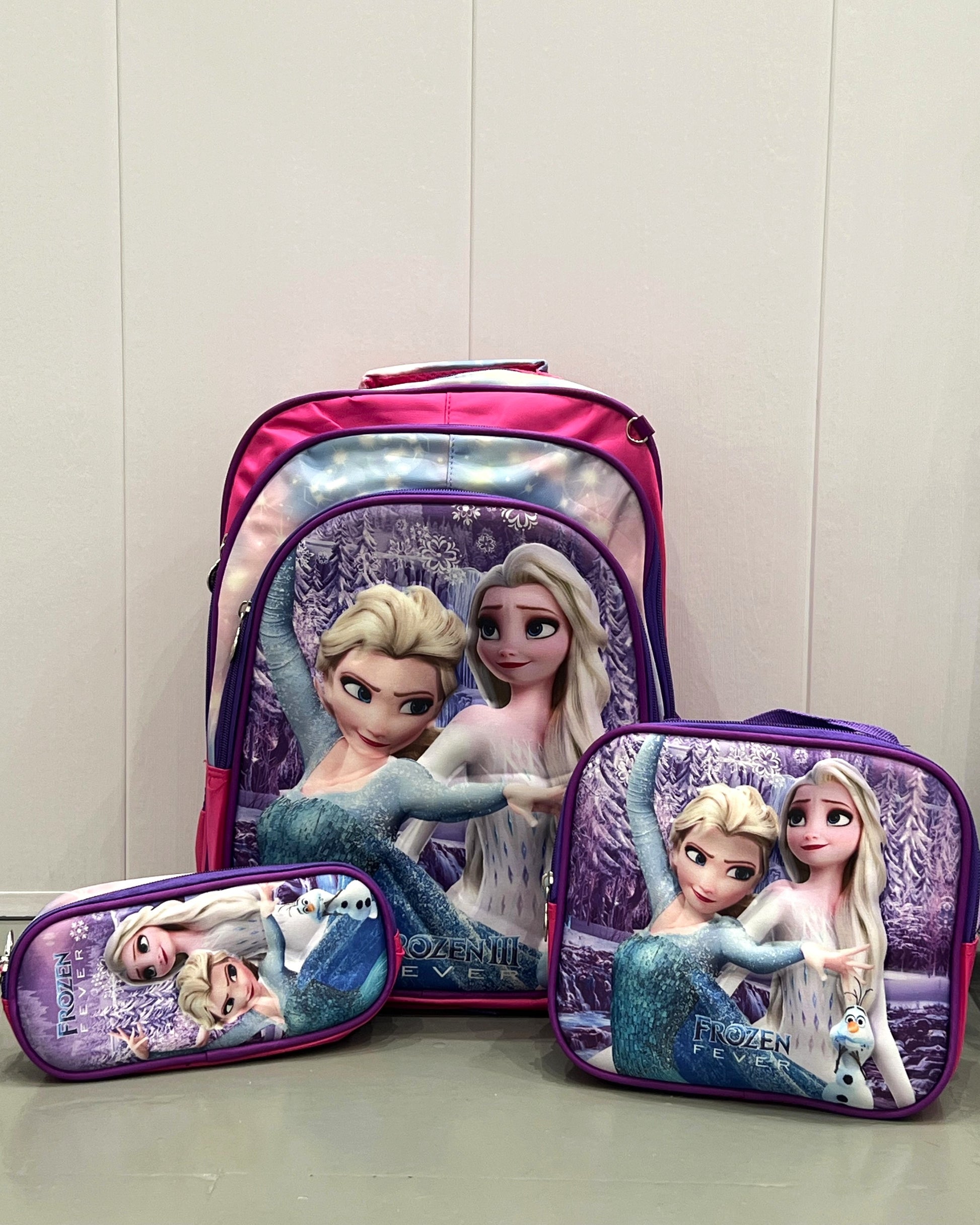 3-in-1 Detachable Trolley Schoolbag Set for Kids – Rolling Backpack with Lunch Bag & Pencil Case - 25-JZ2003-32 Ice Princesses