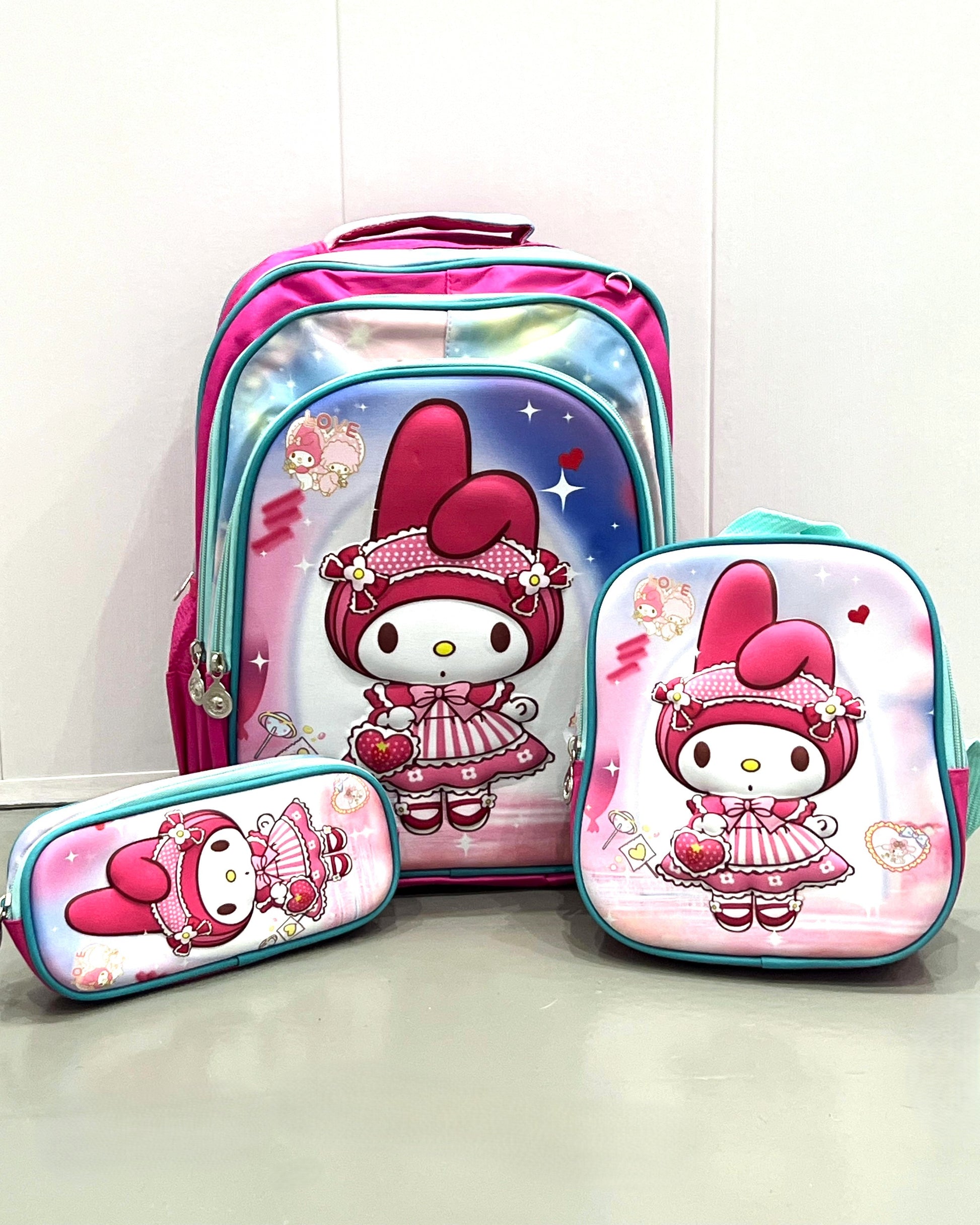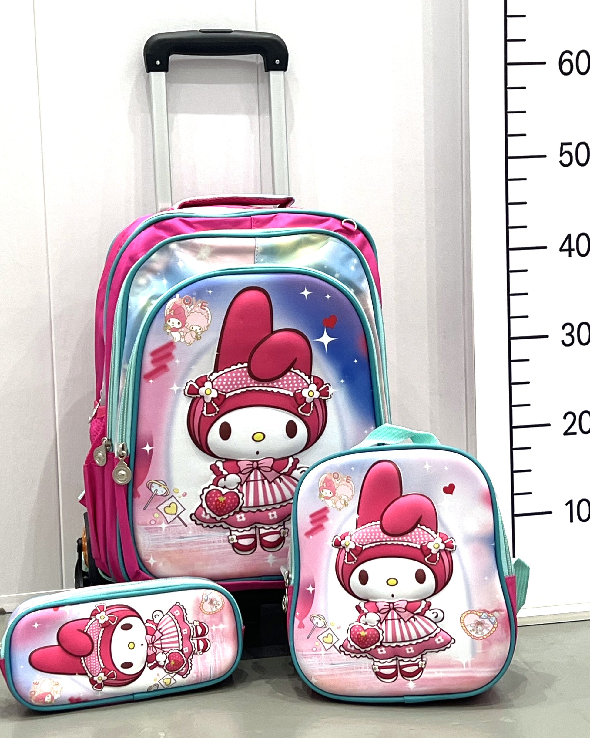 3-in-1 Detachable Trolley Schoolbag Set for Kids – Rolling Backpack with Lunch Bag & Pencil Case - 25-JZ2003-34 Cute Doll