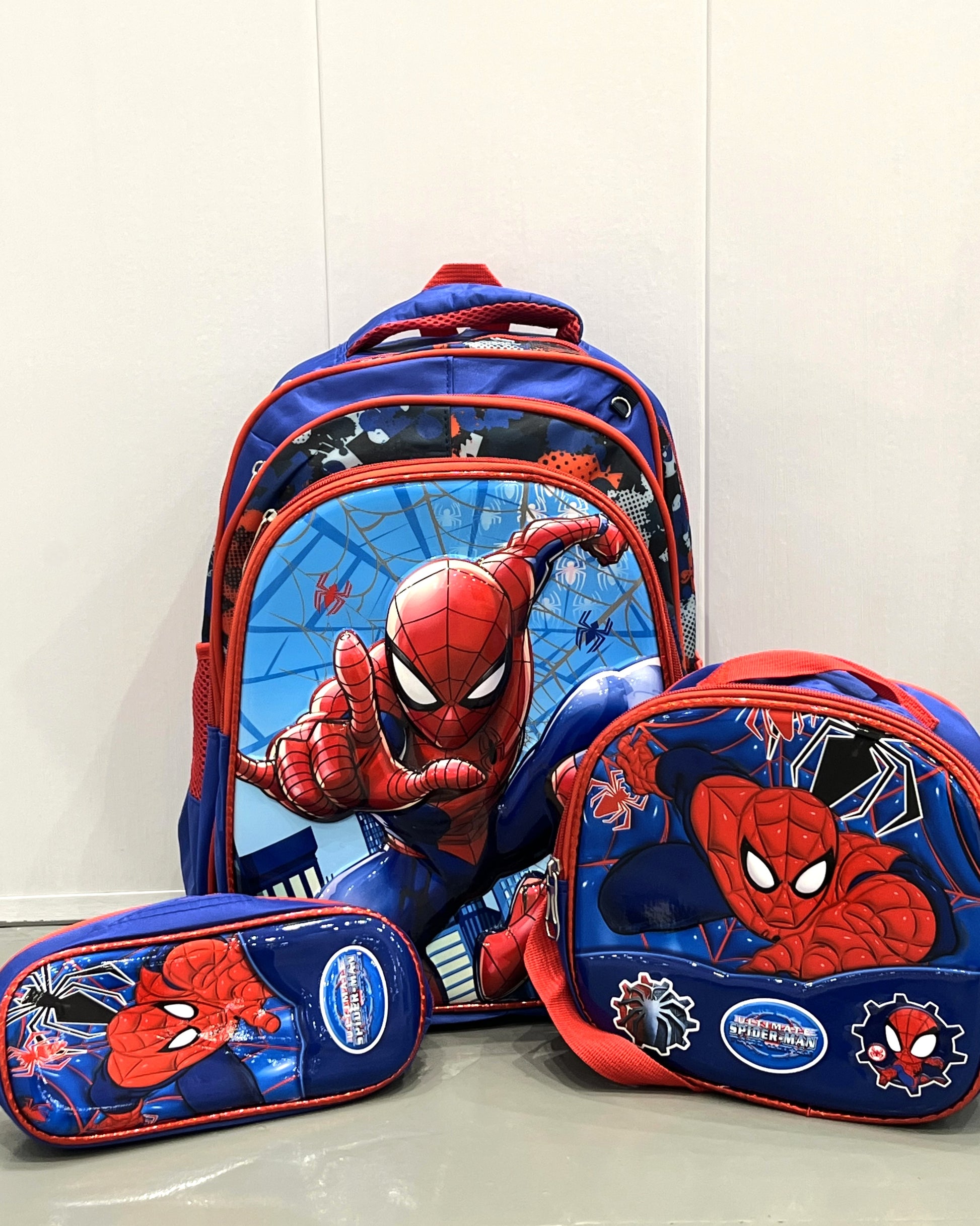 3-in-1 Detachable Trolley Schoolbag Set for Kids – Rolling Backpack with Lunch Bag & Pencil Case - 25-JZ2003-38 Spider Blue
