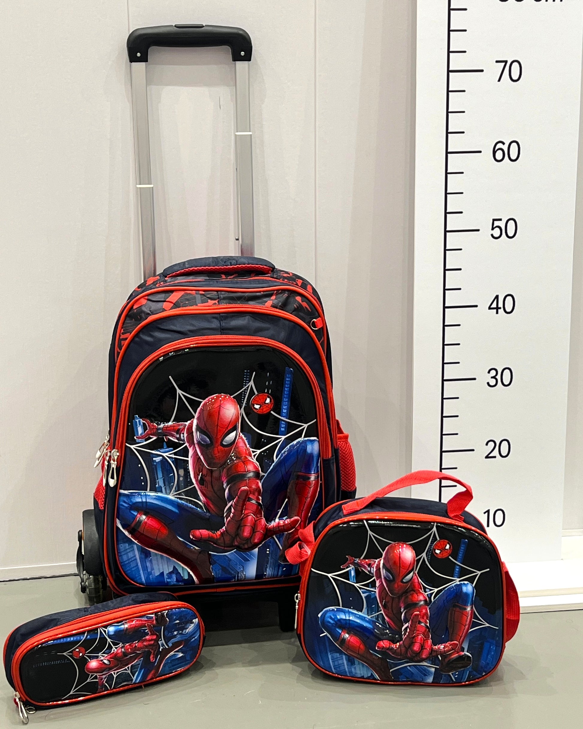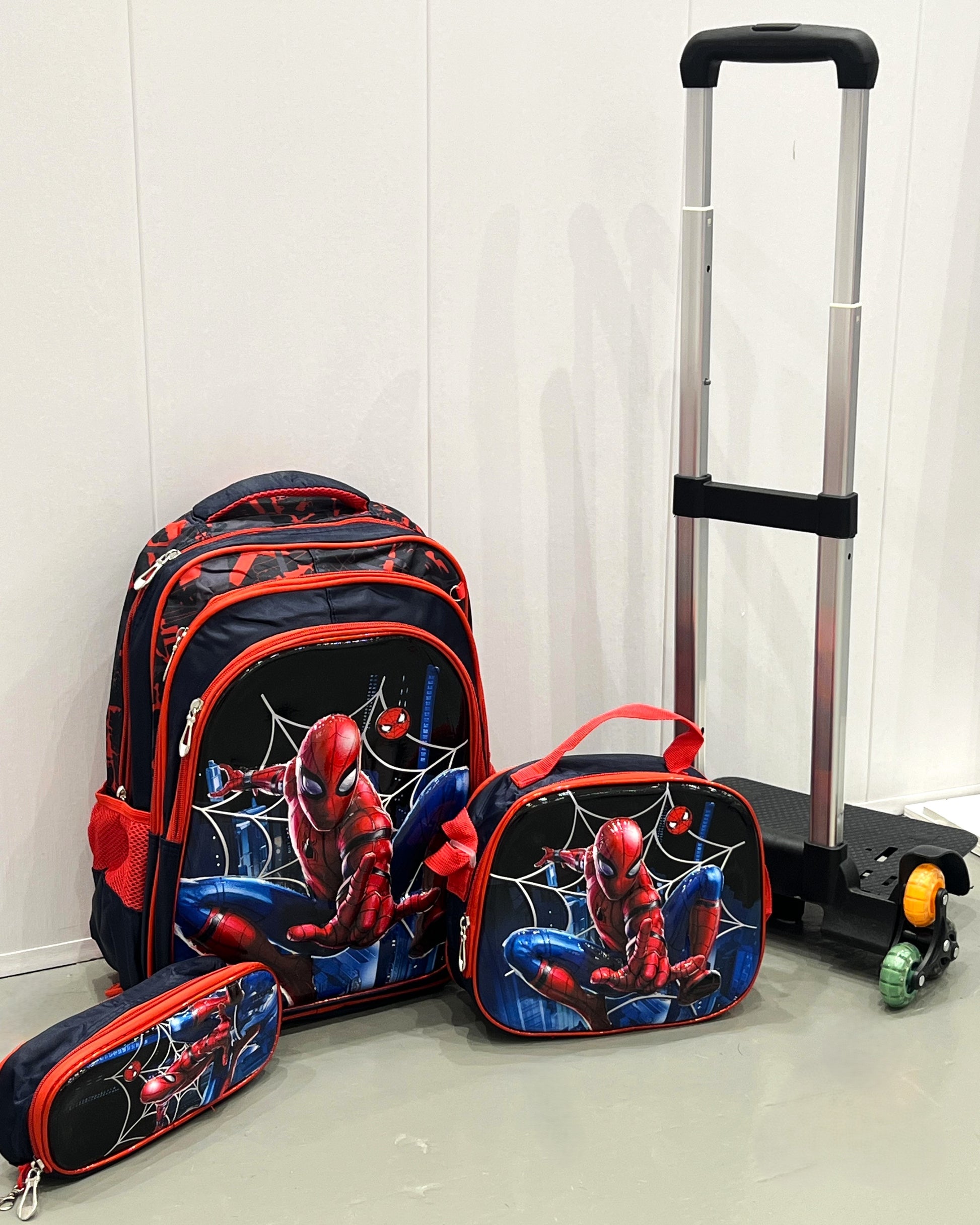 3-in-1 Detachable Trolley Schoolbag Set for Kids – Rolling Backpack with Lunch Bag & Pencil Case - 25-JZ2003-37 Spider