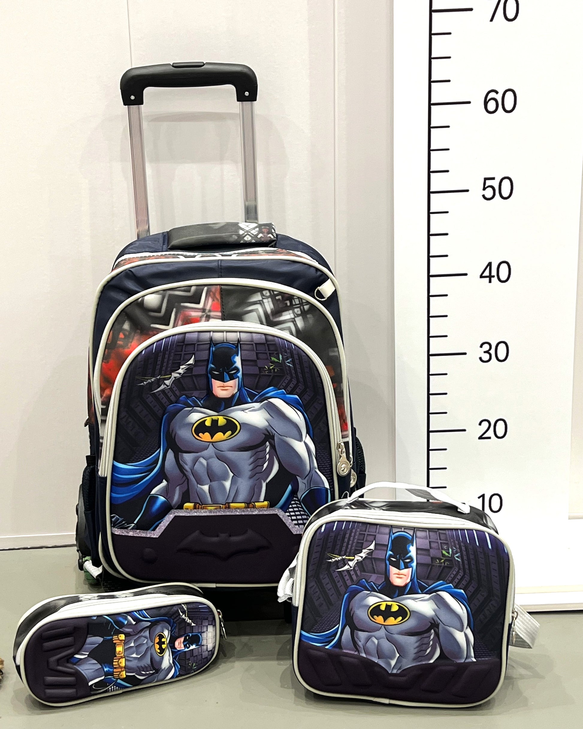 3-in-1 Detachable Trolley Schoolbag Set for Kids – Rolling Backpack with Lunch Bag & Pencil Case - 25-JZ2003-4 Bat