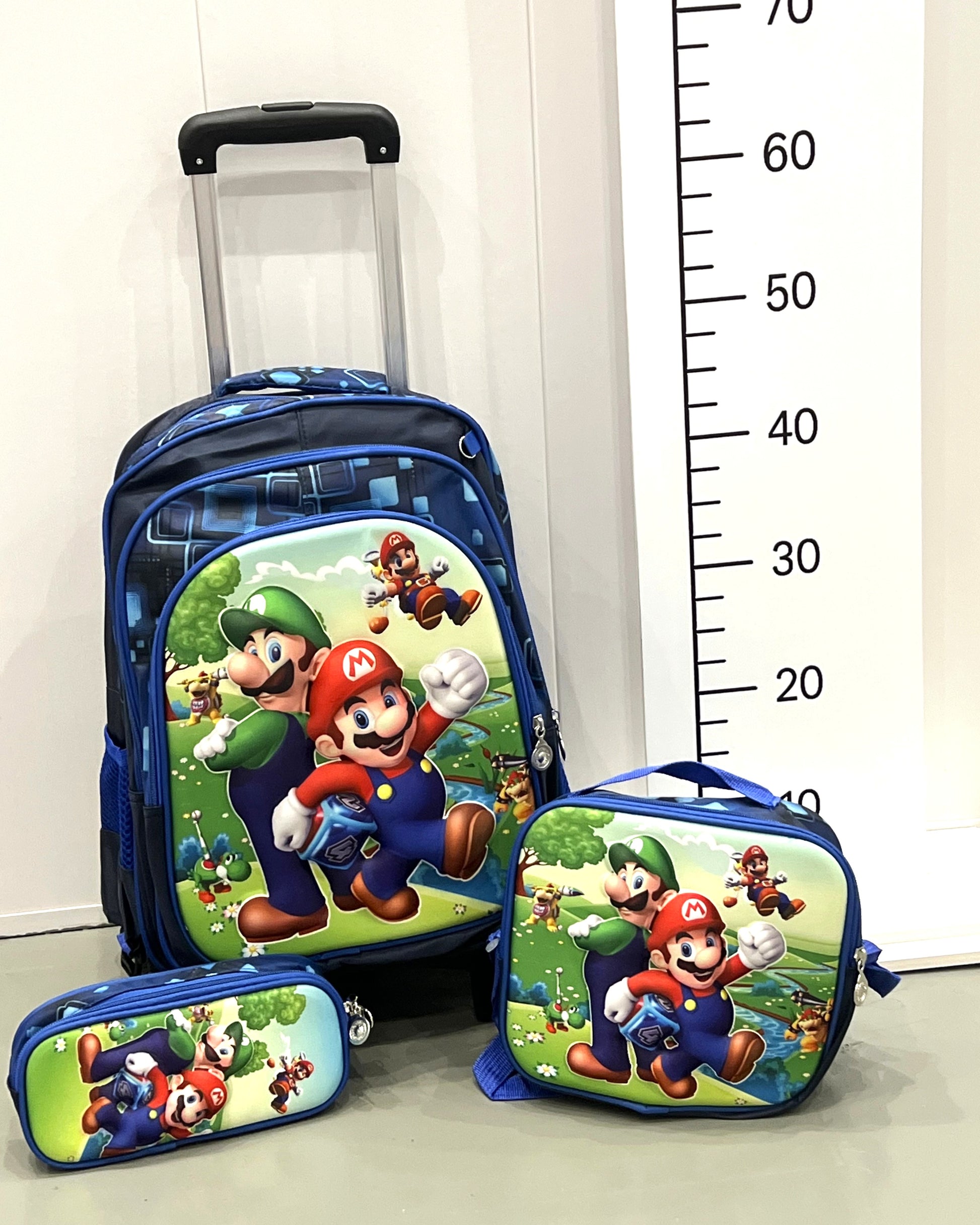 Make back-to-school easy and fun with our 3-in-1 Trolley Schoolbag Set for kids! This all-in-one set includes a rolling backpack, a matching lunch bag, and a zippered pencil case, making it the perfect companion for busy school days, field trips, or travel.