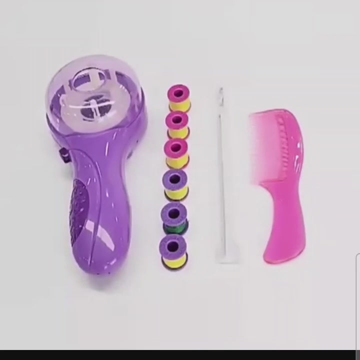 - 🎀 Handheld Braider – Easy tool twists colorful threads into fun hair wraps and braids (no heat, no batteries).