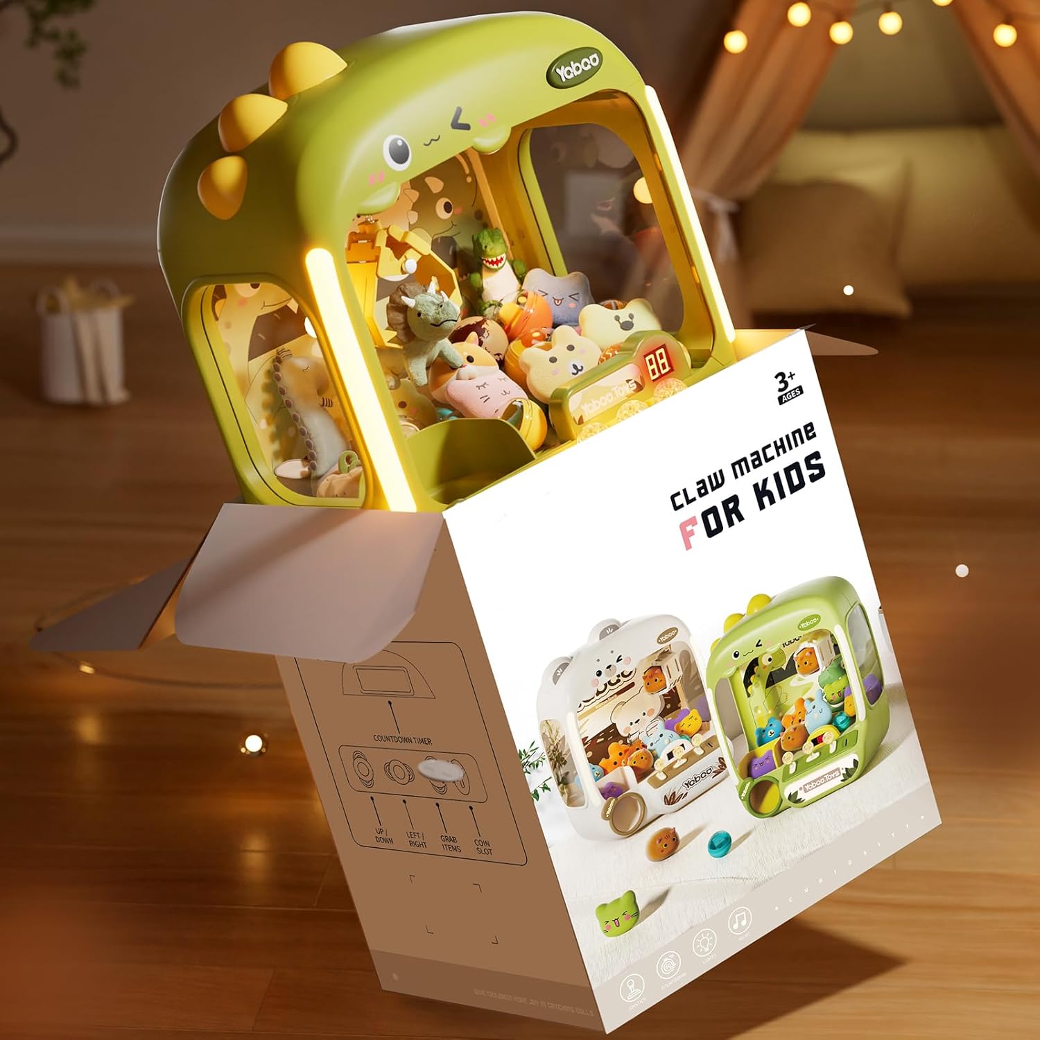 Bring the excitement of an arcade home with this adorable dinosaur claw machine. Bright LED lights, cheerful music, and easy controls make it a fun and engaging toy for birthdays, holidays, and family nights.