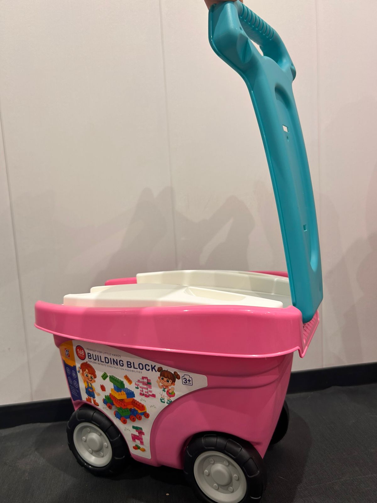 - 🛞 Pull-Along Trolley – Built-in wheels and pop-up handle make it easy for kids to roll their bricks anywhere.